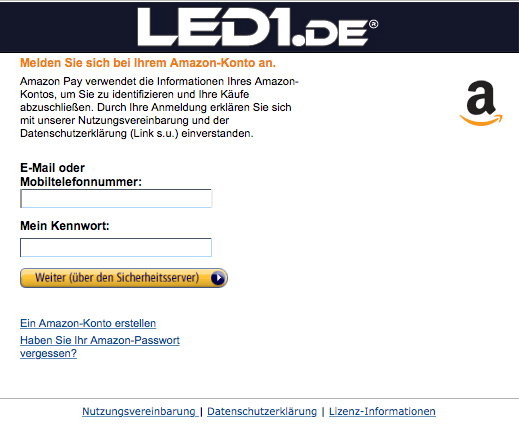Sofern Sie ein Kundenkonto bei Amazon besitzen, können sie ganz einfach und ohne Eingabe Ihrer Adresse mit den bei Amazon hinterlegten Daten bestellen und bezahlen. Mit wenigen Klicks ist der Kaufprozess in kürzester Zeit abgeschlossen und die Abrechung über Amazon abgewickelt. Es entstehen für Sie natürlich keine Kosten.